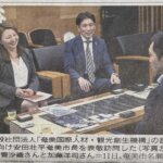2025年6月14日 / 最終更新日 : 2025年6月14日 Organization お知らせ奄美市長との政策意見交換 2025年6月11日(水) 午後5時より、奄美市役所 市長室において、 当機構代表理事 管 沙織と、 当機構名誉理事長 加藤 洋司が 安田壮平 奄美市長 と会談を行いました。 本会談では「奄美国際人材・観光創生機構の在り […]